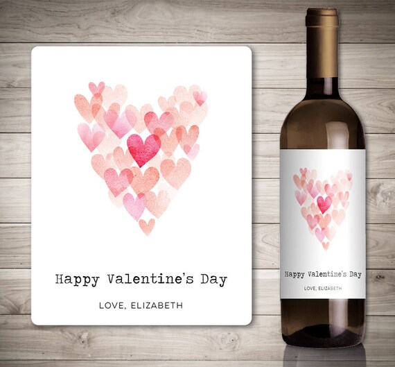 Valentine's Day Wine Bottle Label Drunk In Love | Valentines Day Date Night Dinner Wine Label | Red Hearts Romantic Gift
